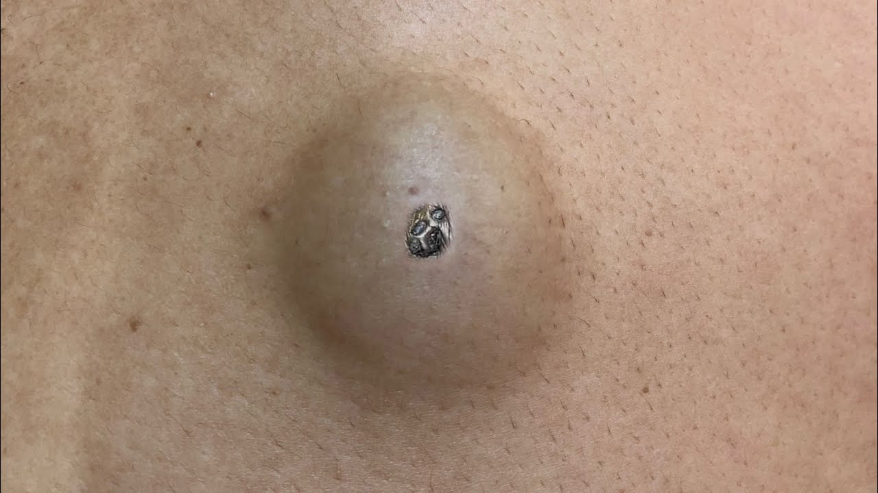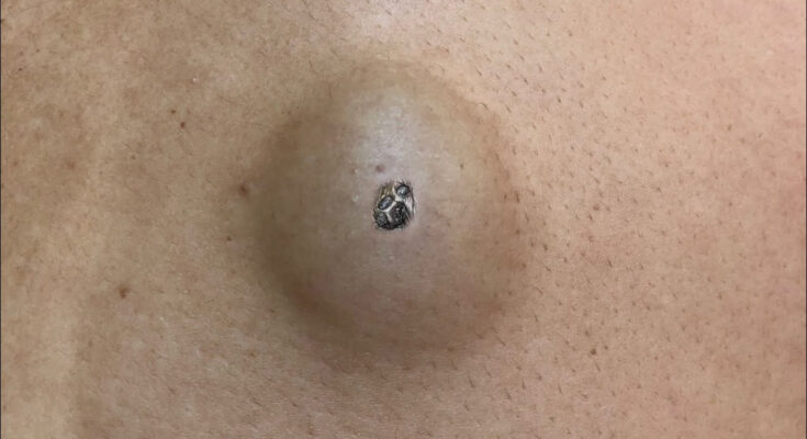 A Sebaceous cyst is like a large pimple. Similar to acne, sebaceous cysts form within or near hair follicles. Sebaceous cysts are benign, firm or palpable growths, which can present as a small lump under the dermis. These cysts are formed from dirt, or excess oil, or a build-up of dead skin and sebum which gets trapped due to clogged hair follicles. Sebaceous cysts can grow rapidly, enlarging over the course of days or weeks.